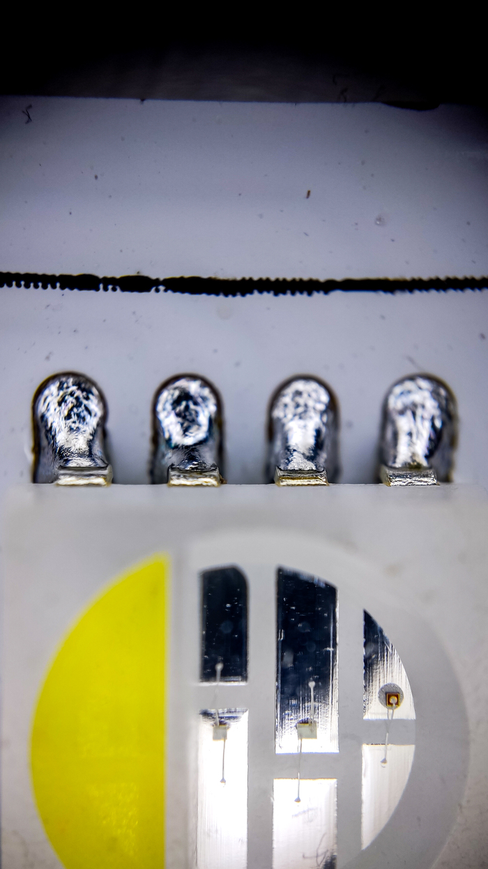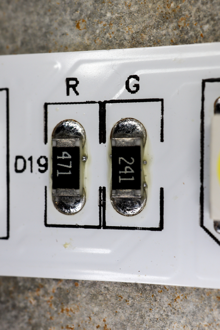Фрагмент белой диодной ленты, диоды способны светить одним цветом -белым.