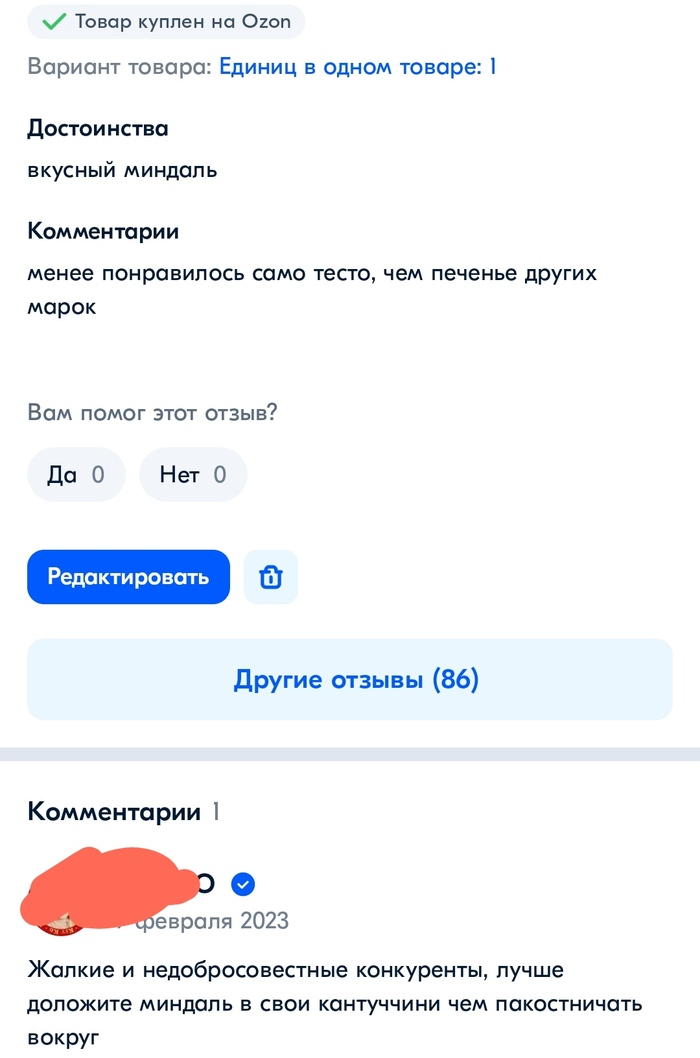 Сижу никого не трогаю, заказываю всякую ерунду на озоне, и решила посмотреть свои старые отзывы, были ли на них ответы. Как-то купила печеньки, которые нам с мужем не зашли, ну я и написала как есть. А вот ответ продавца меня посмешил