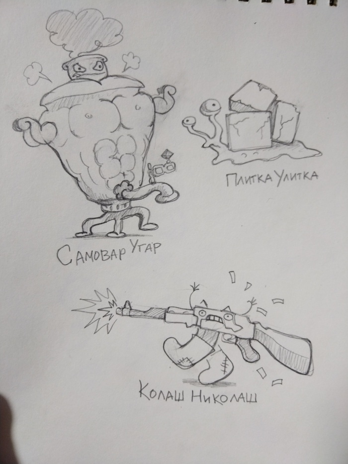 Году в 2020 олимпийский комитет выпустил свои странные символы : шапка кот и медведь неваляшка похожий на кеглю... Меня это повеселило , кот выглядел особенно нелепо... Двухдапый и пучеглазый, и я придумала для него пару Кошка-кокошка , кокошниковая кош 😅 а потом дорисовала еще стереотипные символы 😅
