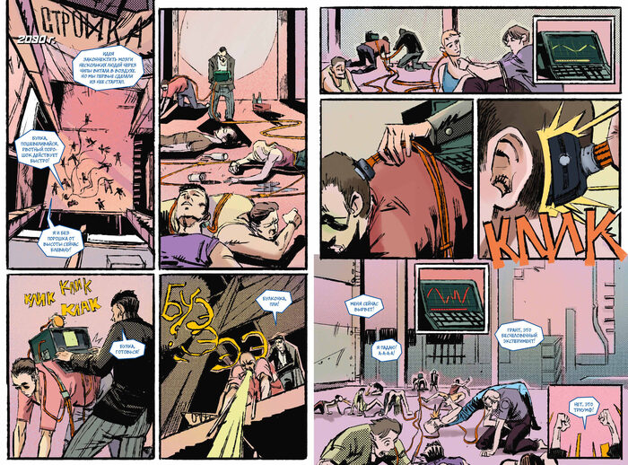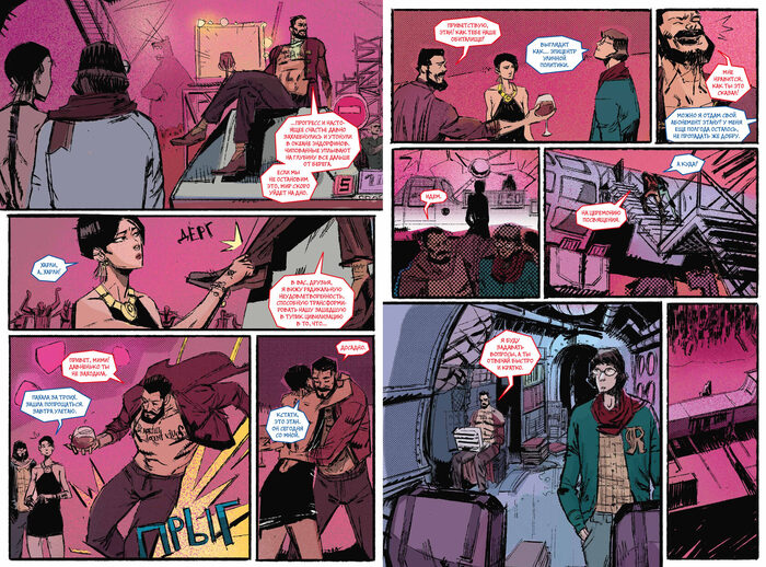 Визуальное решение романа — отдельная тема для разговора. Стилистика нарочито «черновая», динамичная. Однако здесь эта эстетика работает не на чистый экшен, а на создание ощущения хаотичного, живого мира. Примечателен и сам подход к производству, напоминающий работу над крупным кинопроектом: над архитектурой конурбации работал отдельный художник, привлекались консультанты. Это говорит о переходе отечественного комикса от кустарного производства к индустриальному, что, безусловно, является знаком зрелости рынка.