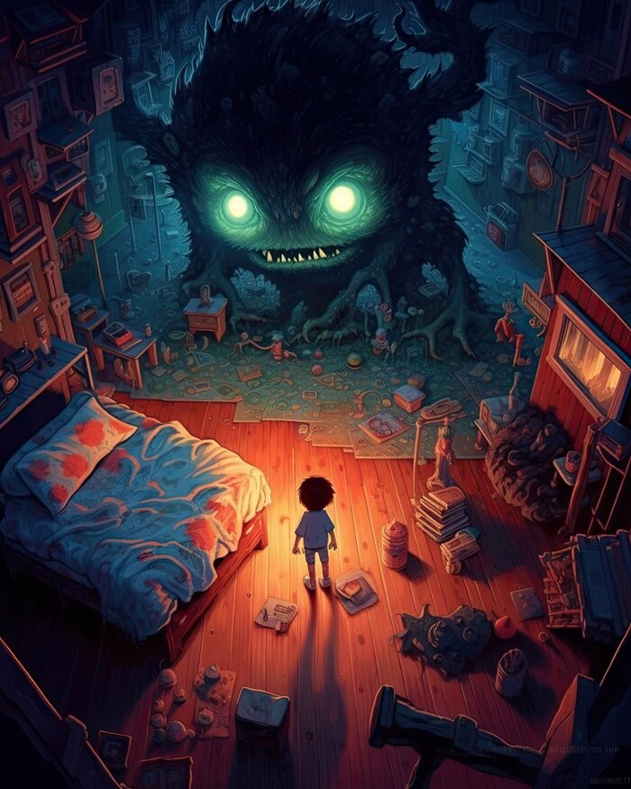 31 luckymanbest Midjourney Ночные кошмары 2 года назад Источник Киберпалитра Показать полностью 9 Арты нейросетей Digital Midjourney Картинки Арт 2D Кошмар Ужас Ужасы Мальчик Длиннопост Ещё 0