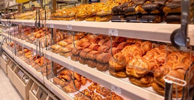 Вечером еду за дочкой и забегаю по-быстрому в магазин, надо купить фруктов, хлебо-бубликов - наказ жены. Все культурно, работники подкладывают булки, покупатели щипчиками накладывают.