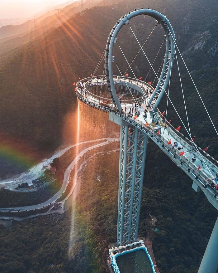 Чтобы построить этот мост в Китае понадобилось 32 миллиона фунтов стерлингов и 12 месяцев. Huangtengxia Tianmen может выдержать нагрузку в 400 тонн. Высота моста составляет 500 метров.