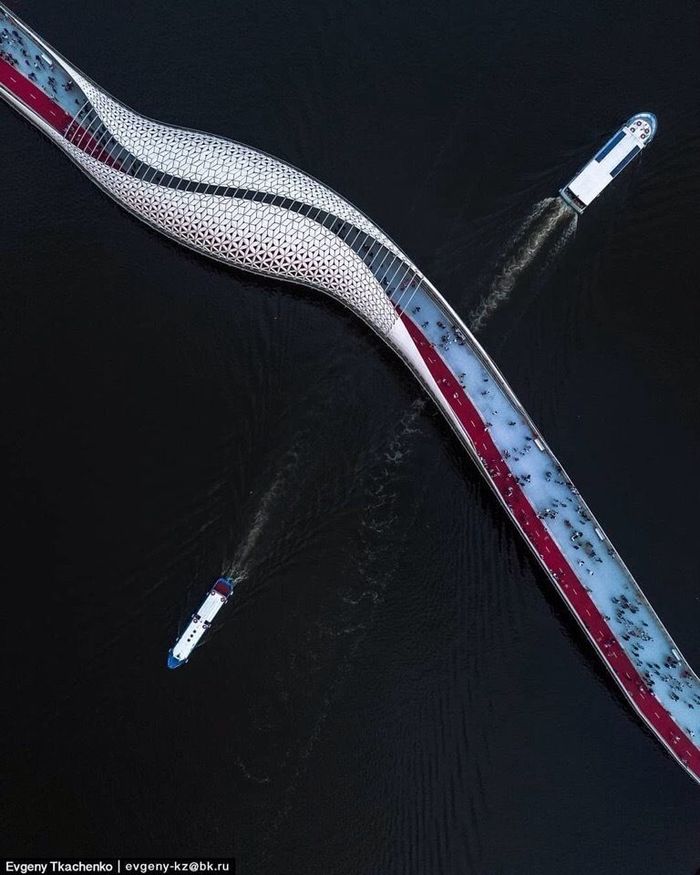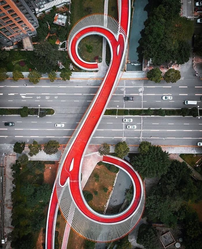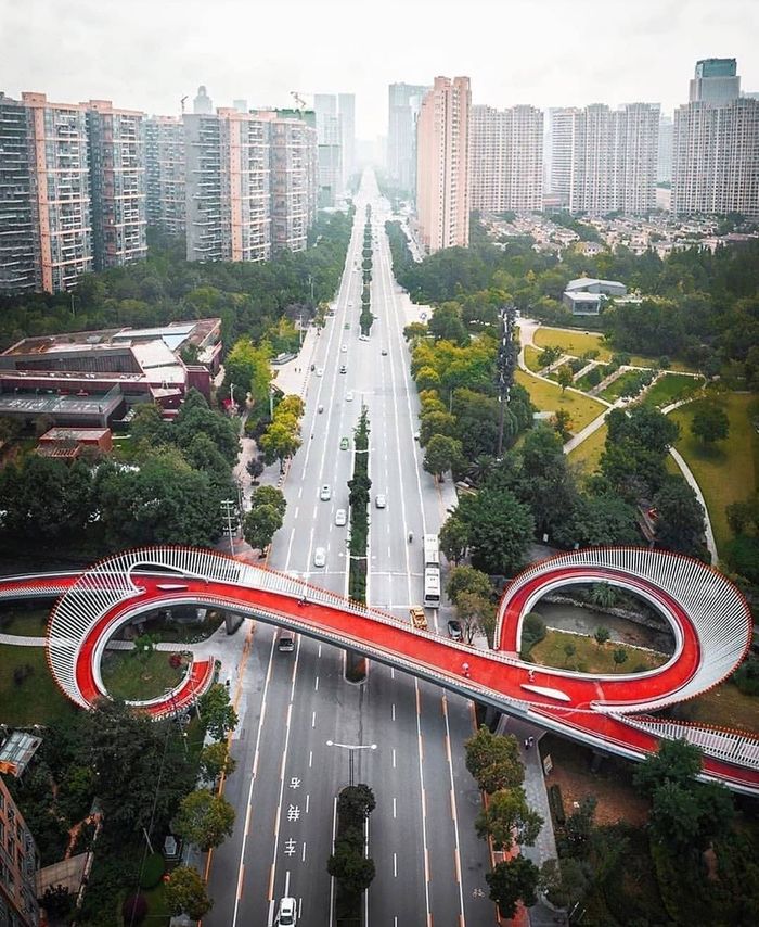 Если взглянуть на мост с воздуха, то он как бы встроен в город. Ruyi. Китайский традиционный S-образный декоративный вид символизирует удачу.