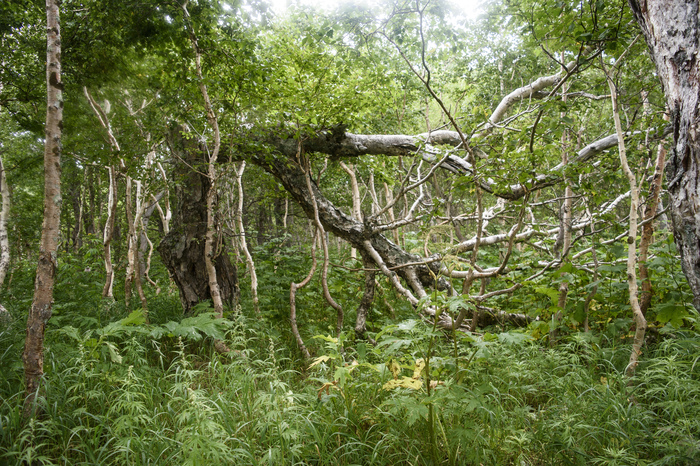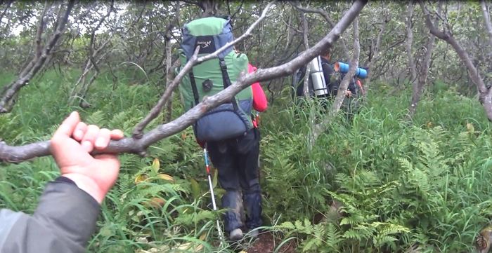 Но жизнь течет, все меняется, и деревца вырастают. Такой стланик уже два - три метра высотой, и если раньше его можно было где-то и перешагнуть, то теперь пройти через него без мачете становится невозможно. Хорошо, что мы шли по некому подобию туристической тропы.