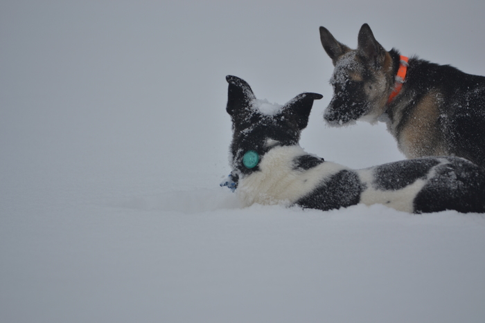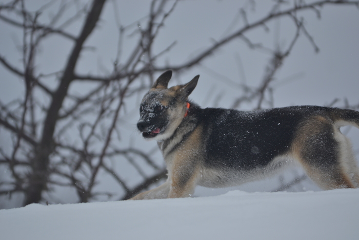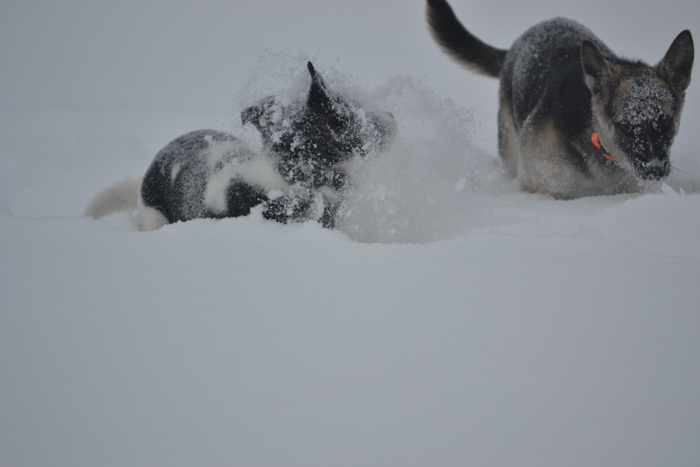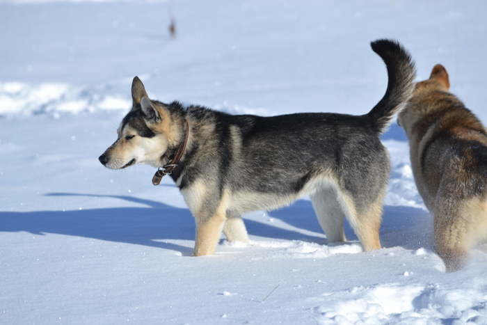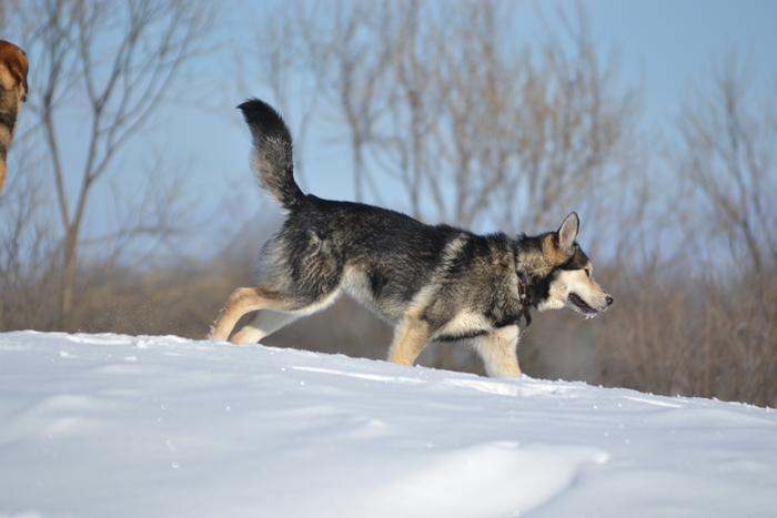 В общем, на прогулке Герде было не холодно, несмотря на очень сильный мороз. А сразу с прогулки я отвела Сакуру и Герду домой, не заводя их в вольер. Герда поняла, что её никто не собирается морозить, и после этого стала выходить в туалет по первому требованию.
