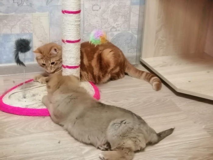 Ещё Герда в первый день бросалась на кошку. Но Мурка у нас уже опытный товарищ. Скольких она уже воспитала за этот год! Мурка объяснила Герде ударом лапы по морде, что наскакивать на кошек – это вообще-то дурной тон. И теперь Герда играет с кошкой достаточно аккуратно.