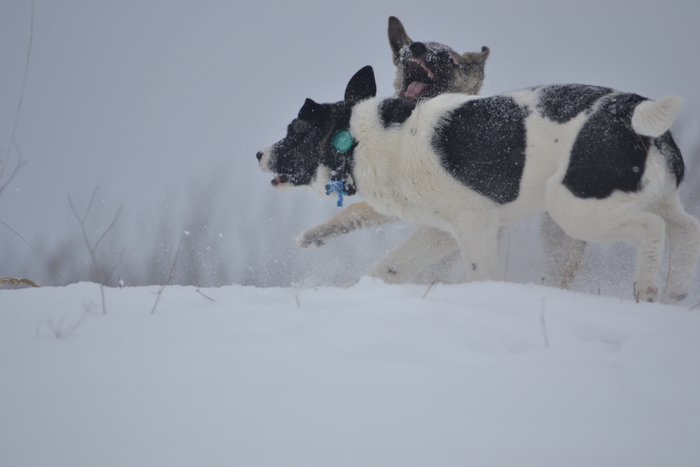 В сильный мороз я ошейники никому не надеваю, руки не выдерживают. Поэтому как-только выхожу, сразу выпускаю собак. И домашние собаки в вольере не ждут, сразу начинают двигаться, поэтому не успевают замёрзнуть. Я вытащила Герду из дома, и мы сразу пошли гулять. Там она совсем забыла про мороз, бегала, играла.