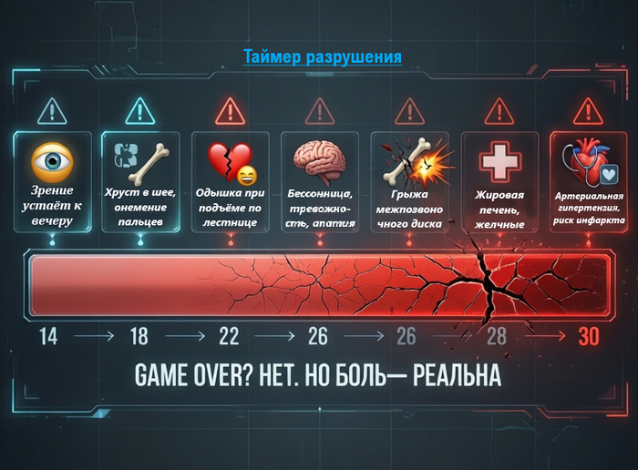 Когда тебе 14–16 лет, кажется, что ты — бессмертный. Ты можешь сидеть за компом 10 часов подряд, спать по 4 часа, есть чипсы и пить энергетики — и всё равно чувствовать себя на все 100. Но твоё тело — не железо. Оно из плоти и крови. И оно молча терпит. Пока не начнёт тормозить.