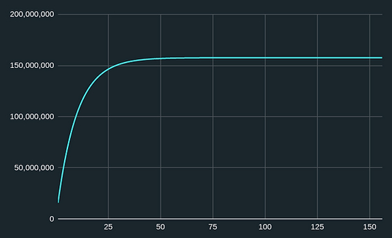 * ... (почти половина объема (supply) будет выпущена в течение первых ~7 лет, см. график ниже);