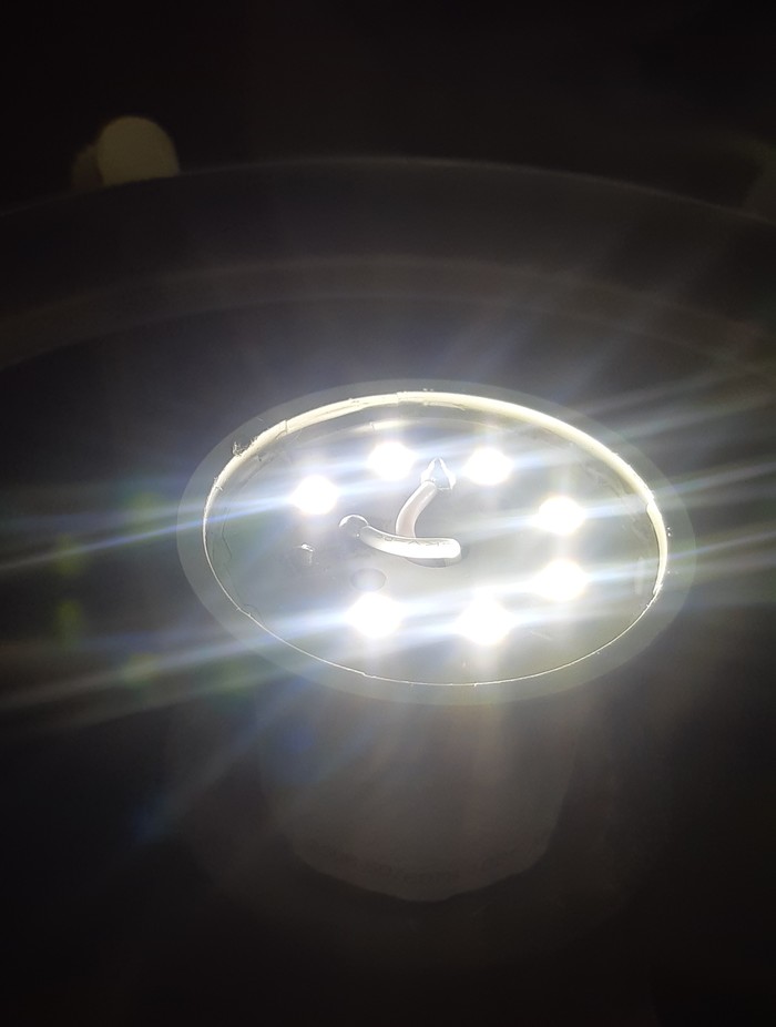Вот так работает маленькая лампочка после ремонта, телефон снимок засвечивает, но суть видно: