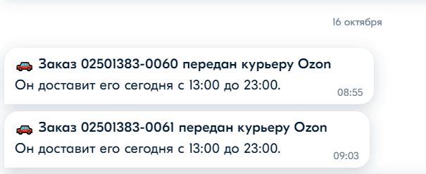 10 октября оформил 2 заказа на зимнюю резину, которую по какой-то причине система никак не давала оформить в пункт выдачи, но обещала доставить курьером 13 октября в период с 13.00 до 23.00. "Ну что ж, раз мне не дадут возможность забрать в удобное время из ПВ, то тогда получу уж в вечернее время в будни или же в выходные все равно дома буду", - подумал я и оплатил заказы. Уже после оформления поступила информация в личный кабинет, что доставка будет совершена 16 октября в период с 13.00 до 23.00. "Ну ок, не горит. После 20 часов в будни будет удобно забрать", - с такими мыслями не стал предъявлять ничего.