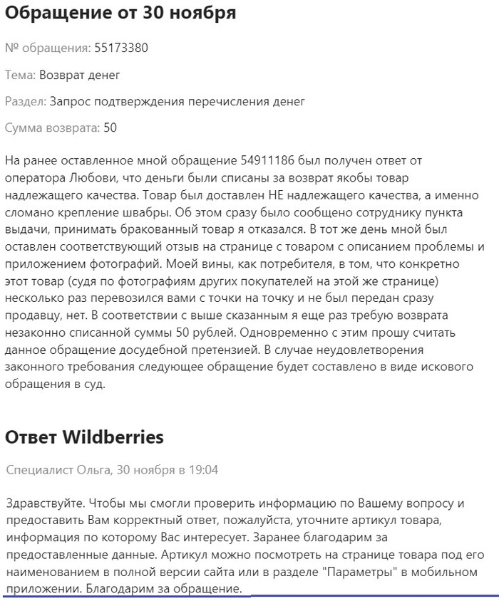 Собрал мысли в очередное обращение, указал на нарушение ст.16 ЗоЗПП и что в соответствии со ст.23.1 за такие вещи в праве требовать с организации по 0.5% от стоимости товара; указал, что день не закончился еще, и что доставку никто до меня и не пытался осуществить. Как итог - шаблонная отписка.