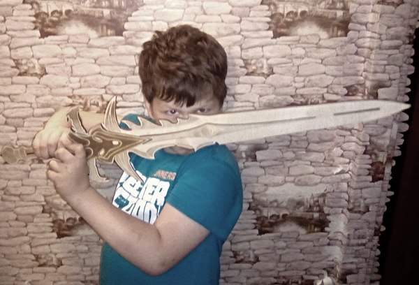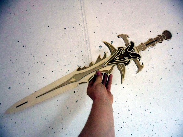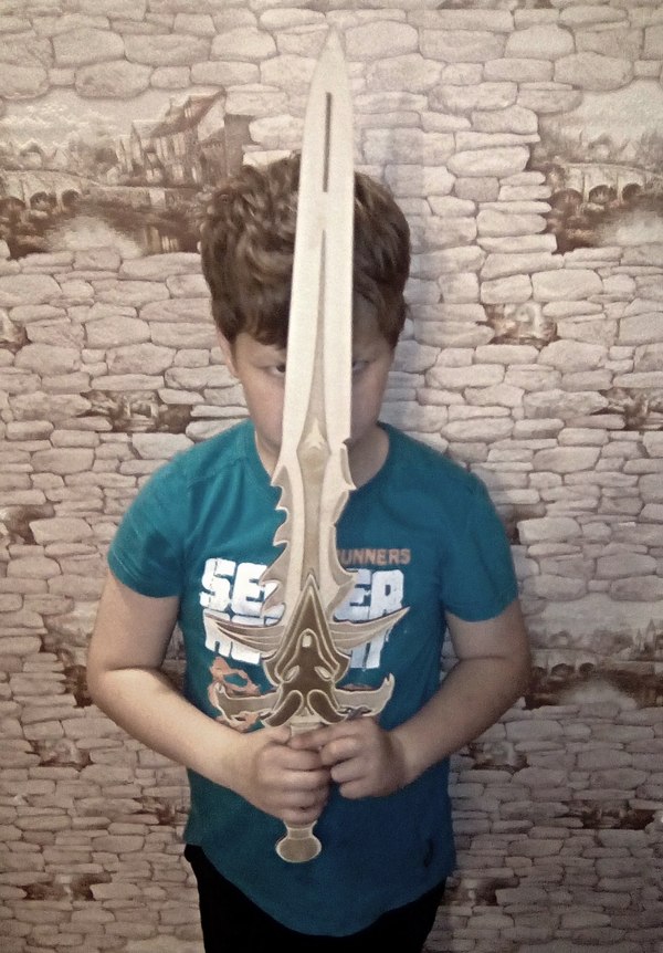 "Учил" свой станок гравировать, между делом вырезал сыну меч.