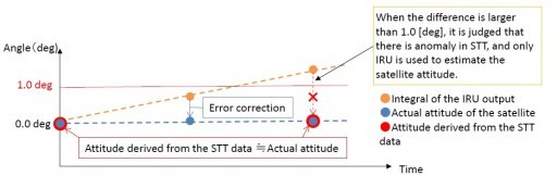 Для телескопа критически важна точность наведения на исследуемый объект, и поддержания этого положения. Датчики неидеальны, и для точной ориентации используется фильтр Кальмана. Это такой хитрый алгоритм, который позволяет, используя накопление по времени каких-либо данных, выделить полезную информацию среди зашумленных и неточных измерений. В случае "Хитоми" на выходе получаются текущие угловые координаты спутника, текущие скорости их изменения, и (важно) оценка дрейфа нуля гироскопов. На этот "оцениваемый дрейф" тоже делается поправка, которая включается в окончательные данные о положении и скорости вращения спутника.