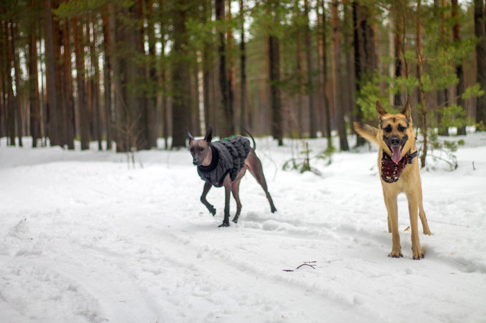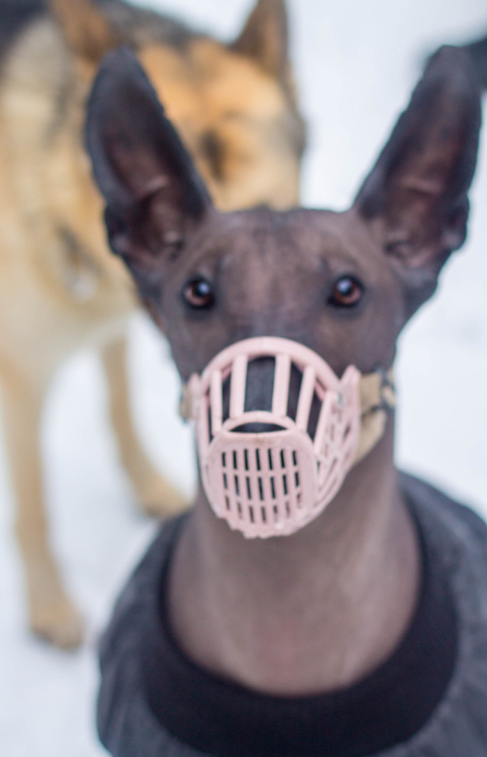 Кстати, уши у них очень тонкие и чувствительны к холоду. На большом морозе (относительно Мексики!) натягиваем ей капюшон на голову. Либо необходимо смазывать уши специальным кремом, иначе она может их обморозить.