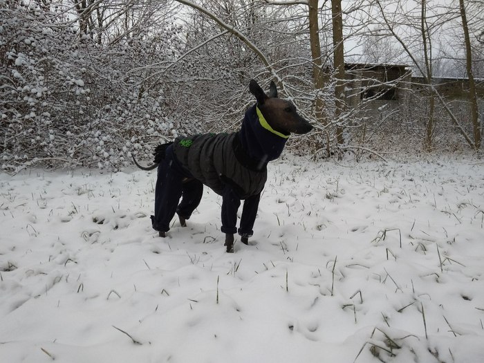 Не мерзнет ли она? Нет, в нашем суровом климате чувствует себя хорошо. Зимой при большом минусе, когда температура падает ниже -10, то конечно уже одеваем.