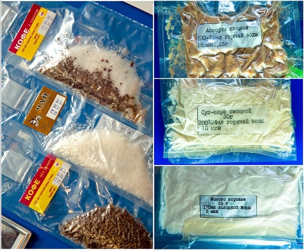 Во время первых полетов каких-либо особых манипуляций в плане питания космонавтов не требовалось – полеты были не слишком длительными, поэтому нужно было лишь обеспечить людей оптимальным количеством калорий и витаминов. С собой выдавались специально разработанные тубы с гомогенизированными первыми и вторыми блюдами.