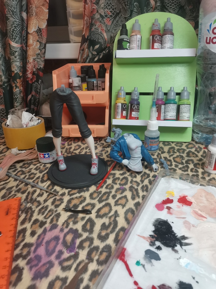 Ножки покрашены самое время заняться, верхней половиной, куртка в покрасе оказалась самой простой частью.