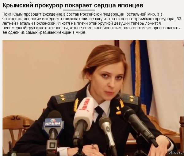12 maksimka982 Покарает... 11 лет назад она может) Прокурор Крым Наказание Крымская весна Наталья Поклонская Японцы