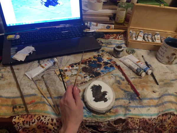 Примерно полтора года назад увлеклась фотоохотой на птиц... Но эта тема заслуживает отдельного поста)) Скажу только, что это - очень вдохновляющее занятие, никогда раньше не думала, что птицы (даже самые обычные сороки, воробьи, вороны) могут быть такими красивыми и интересными в плане наблюдения. И вот недавно меня припекло, решила я начать рисовать их на спилах деревьев...