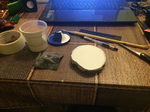 Для начала я взяла имеющийся в наличии спил ясеня, размером примерно 10х13 см, загрунтовала его, сделала карандашный набросок, края заклеила малярным скотчем, а затем приступила к росписи. Использовала масляные краски.