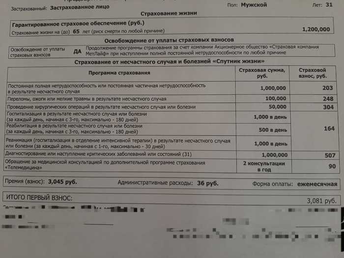 Еще один частный случай рискового страхования — кредитное. В этом случае, если банк указан в качестве выгодоприобретателя, выплату получите не вы, а банк, в котором вы взяли кредит. Если с вами что-то случится, вашим родным не придется расплачиваться за вас. Пример расчет,( сюда входит 31 заболевание, перечень прикреплю в следующем посте.)