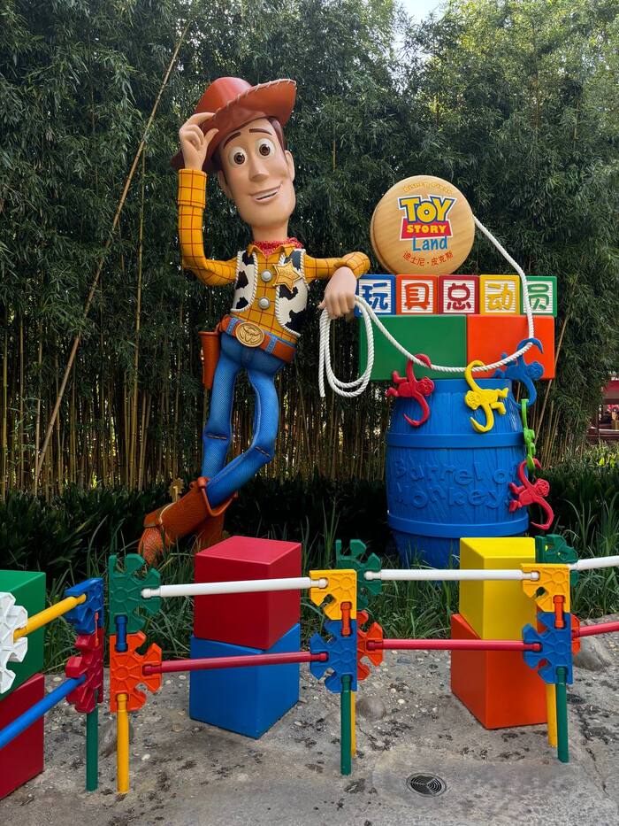 Самая популярная зона парка - Зоотопия (Зверополис. Кто идет на вторую часть в кино?), является самой свежей зоной парка и именно туда приезжают китайцы, славится невероятно крутым аттракционом. Если смотреть на карту, то туда всегда самое долгое ожидание, около 180 минут, но оно того стоит! Стоять в очереди совсем не скучно, ведь сама очередь своего рода аттракцион и предыстория событий. сначала стоишь в змейке на улице, но потом попадаешь в полицейский участок, где сидит милейший Когтяузер, поедает пончики и рассказывает всем, как он любит Газель. Дальше у нас экскурсия по полицейскому участку, где можно увидеть кабинеты Ника и Джуди, попасть в тюрьму и узнать, что мисс Барашкинс сбежала. Заканчивается экскурсия в кабинете шефа Бого, который отправляет вас на поиски преступников. На этот аттракцион мы сходили трижды за два дня и я бы с удовольствием отстояла бы эту очередь еще! Но есть небольшой лайфхак, когда в парке идет парад, то нужно вставать на просмотр парада в зоне истории игрушек и как только проедет последняя платформа, то бежать в зоотопию. Очереди не будет совсем.