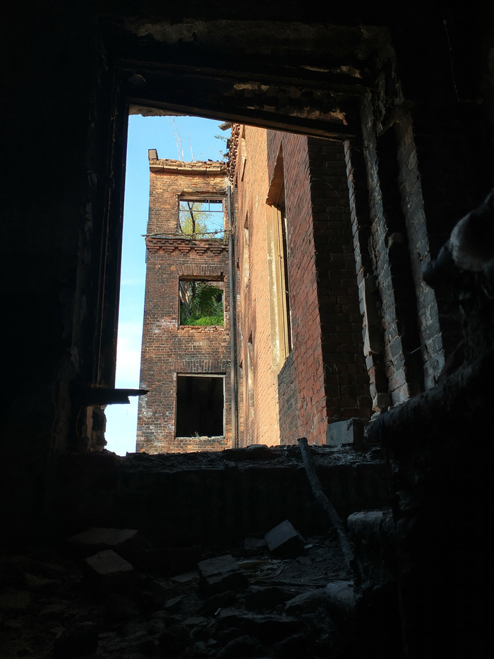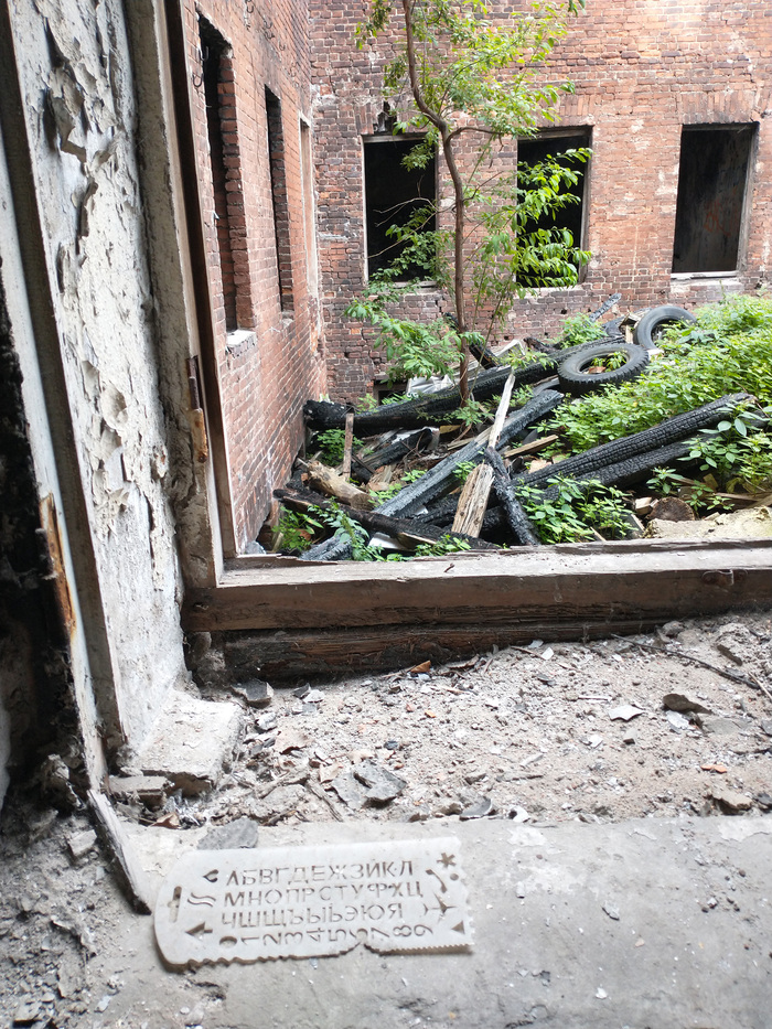 Бомж указал на стену тёмно-кирпичного здания неподалёку. Там в самом деле красной краской был изображён свежий рисунок-граффити: череп, от которого во все стороны расходятся волнистые линии — то ли лучи света, то ли текущая кровь.