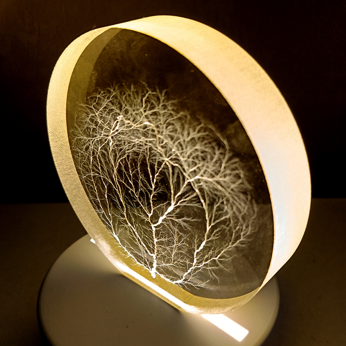 По научному называется Фигура Лихтенберга. Картины распределения искровых каналов, образующиеся в объеме твёрдого диэлектрика при искровом разряде.