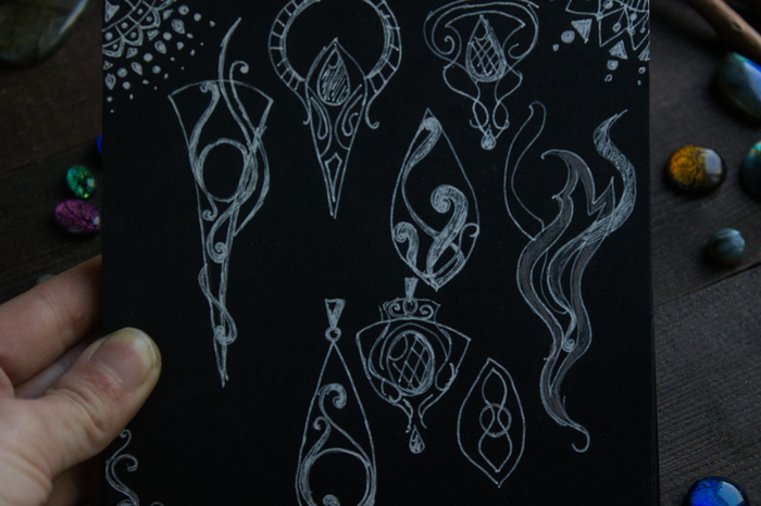 я выкладываю серию постов и показываю выбранный эскиз, рабочий процесс и готовое украшение на фоне эскиза.