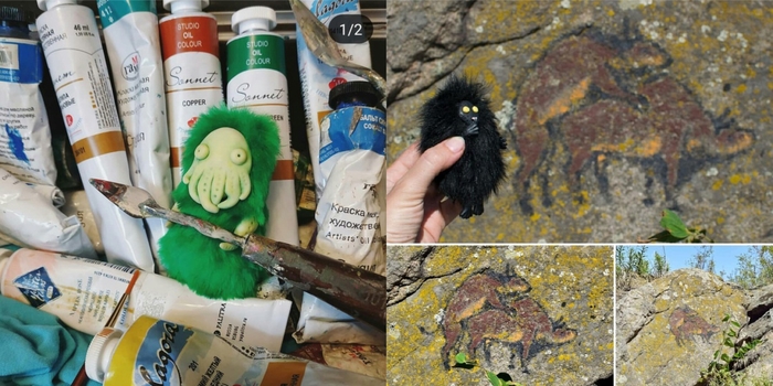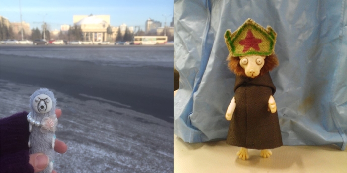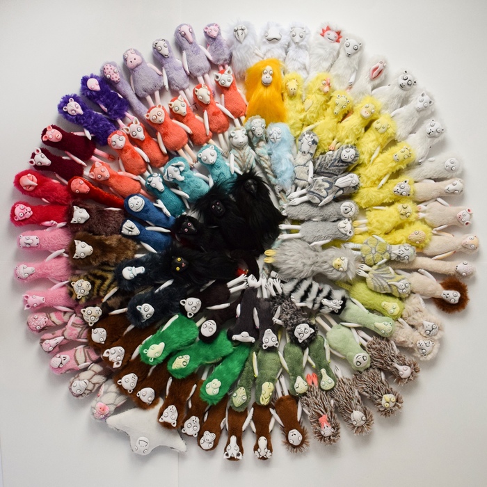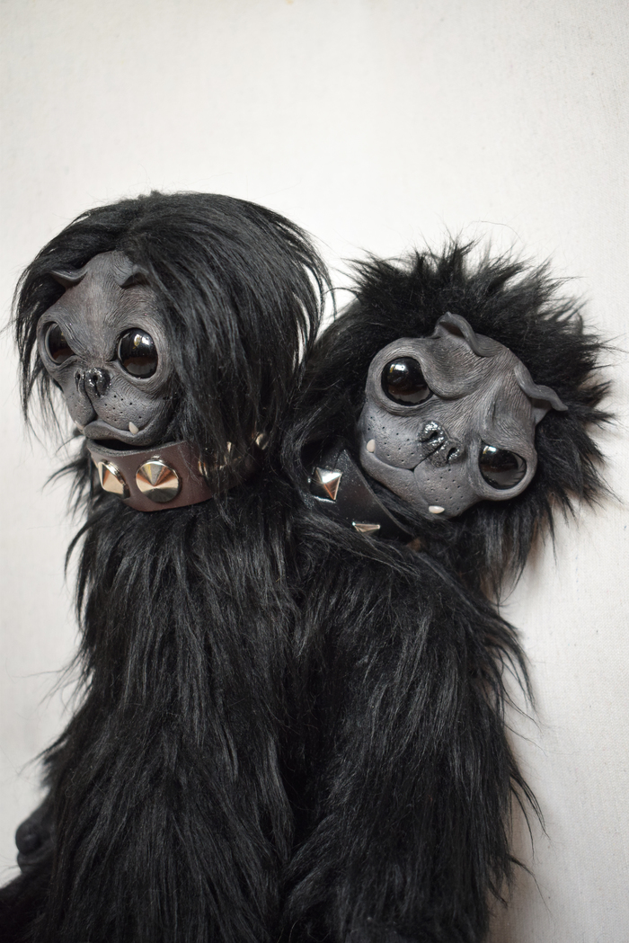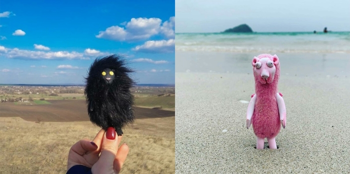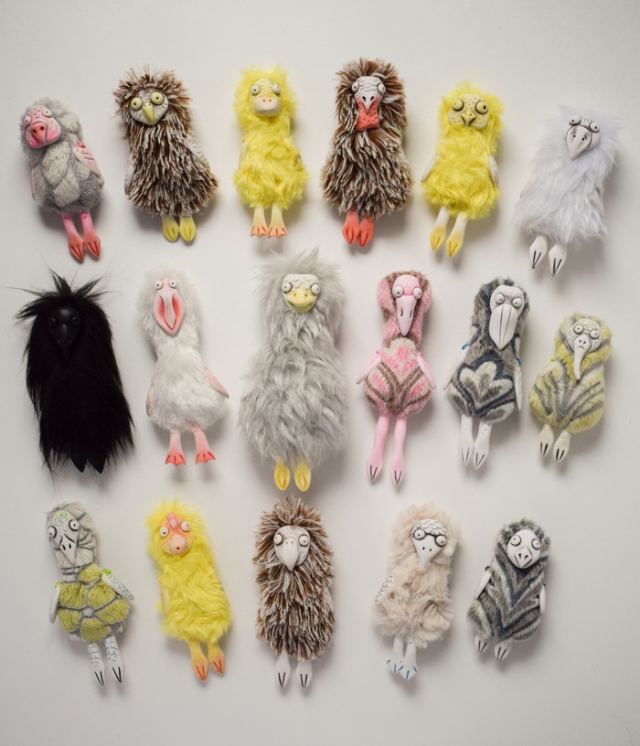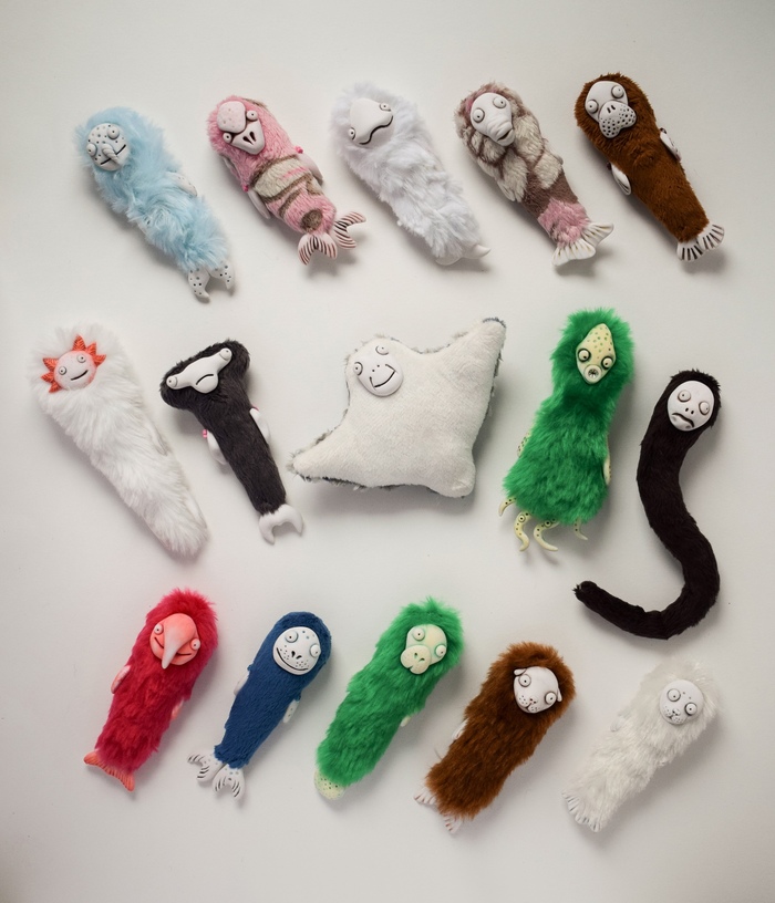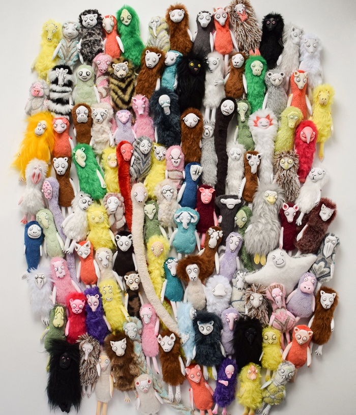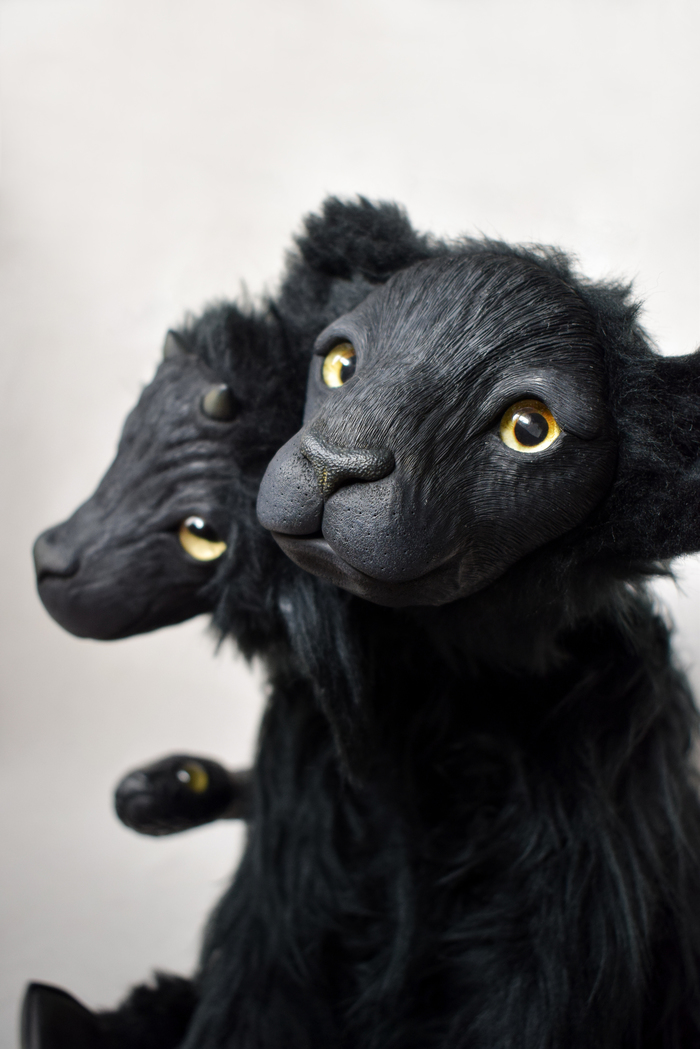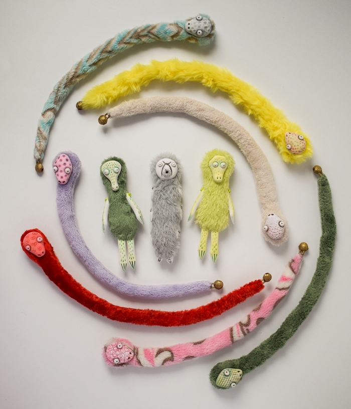 Мордашки, лапки, копытки, крылья - полимерная глина, шубки - искусственный мех, глазки - стекло.