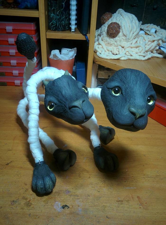 Все игрушки (кроме химеры) на шплинтах, могут сидеть, вертеть головой/лапами/крыльями. Химера на скелетном каркасе и может вообще всё, даже чесать за ухом))