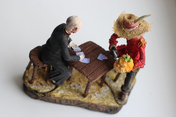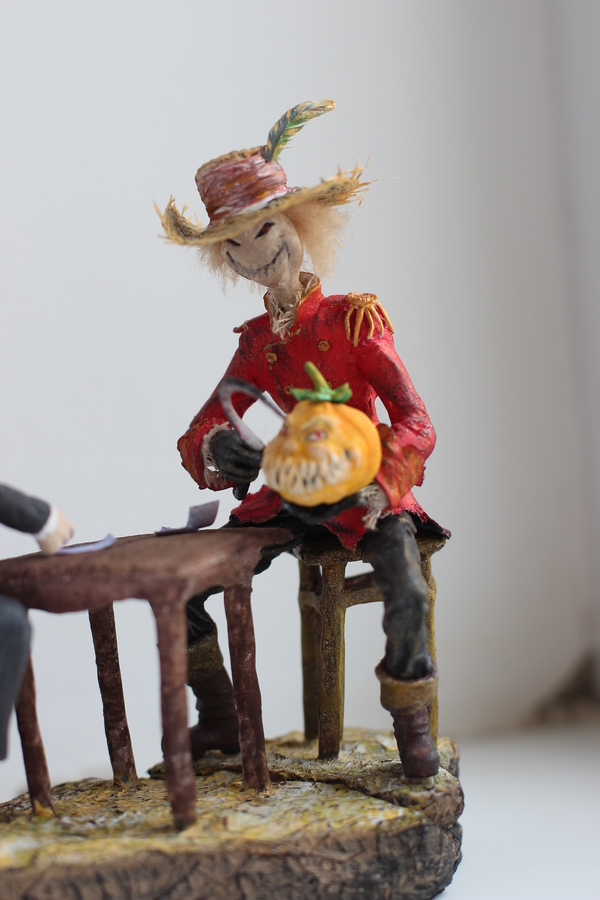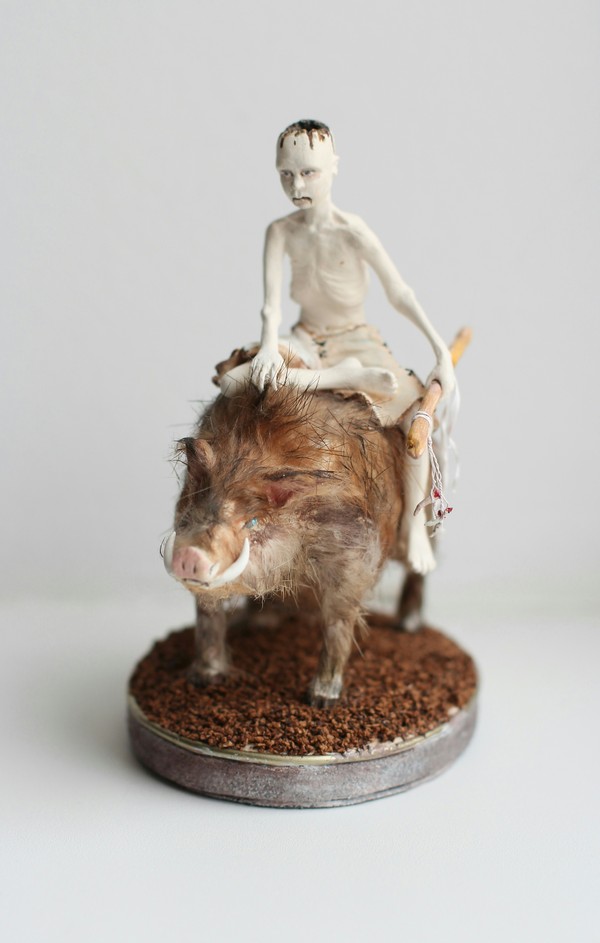 В догонку к посту с Пугалом и Проповедником. Визаган, по мотивам А.Пехова "Страж". Общая высота фигурки 10,5 см вместе с кабанчиком. В черепе у него отверстие, из которого идет дымок, когда поджигаешь маленькую дымовую палочку( не знаю как они называются), которая там установлена.