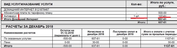 И о чудо, оказывается Ростелеком, решил подарить мне на НГ антивирус, да не просто так, а за мой счёт стоимостью 107 рублей 61 копейка. Всегда мечтал о таком подарке, под Новый Год.