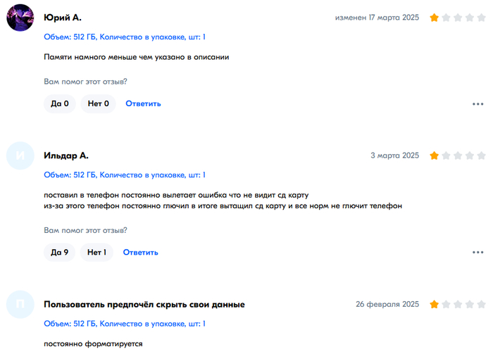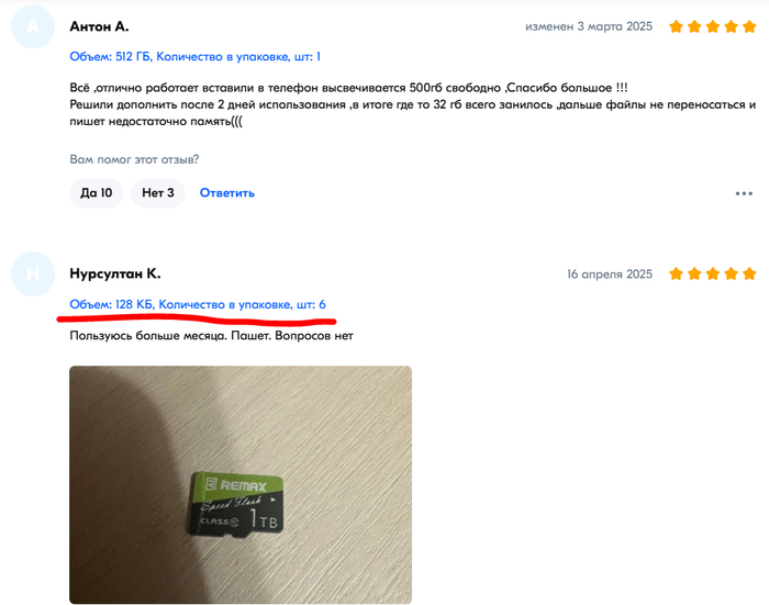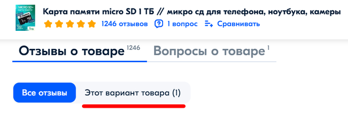 Для поиска проблемы необходимо копнуть чуть глубже. Берем товар Карта памяти micro SD 1 ТБ. Идеальные отзывы, вкусная цена. Но смотришь отзывы, а там: