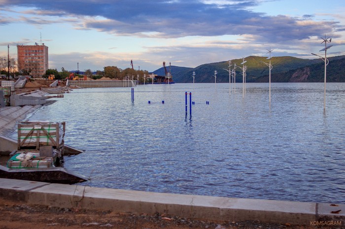 Преамбула: в 2013 году, в Комсомольске-на-Амуре было наводнение. Тогда, старую набережную затопило на уровне Амура 820 см. Выглядело это так: