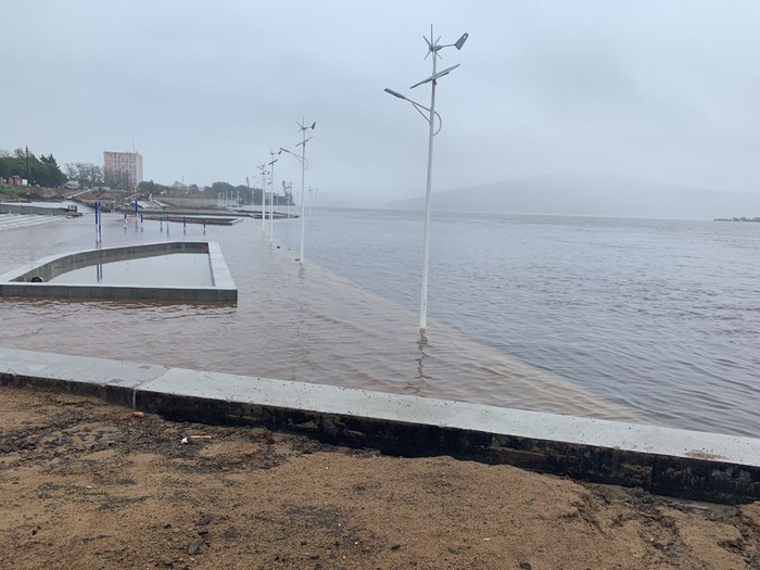Вода в данный момент уже идёт на убыль, максимум был 829 см, и что останется от новой набережной после её ухода-непонятно, строители говорят всё будет хорошечно. У меня только один вопрос-кто и под чем делал этот проект. Но красиво получилось, очень эпично.