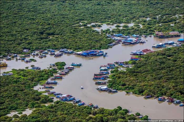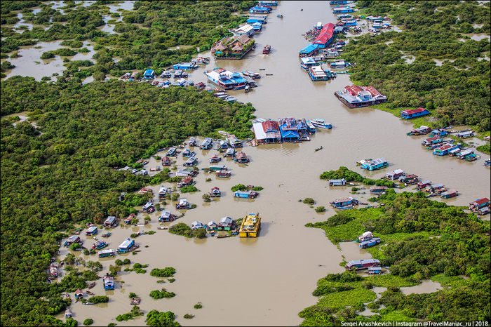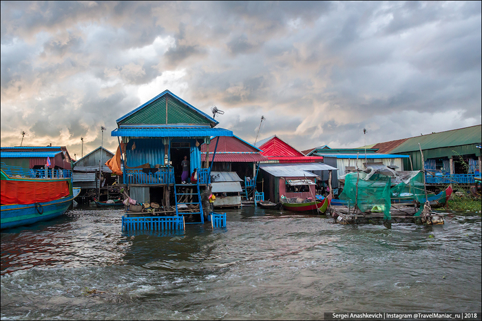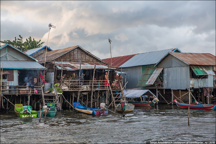 Берега озера Тонлесап, которое в Камбодже называют даже внутренним морем, настолько оно огромно, люди населяли испокон веков. Озеро невероятно богато рыбой, поэтому рыбаки здесь жили всегда. Но двухмиллионным плавучим мегаполисом эти места стали только в середине прошлого века, когда в соседнем Вьетнаме началась война.