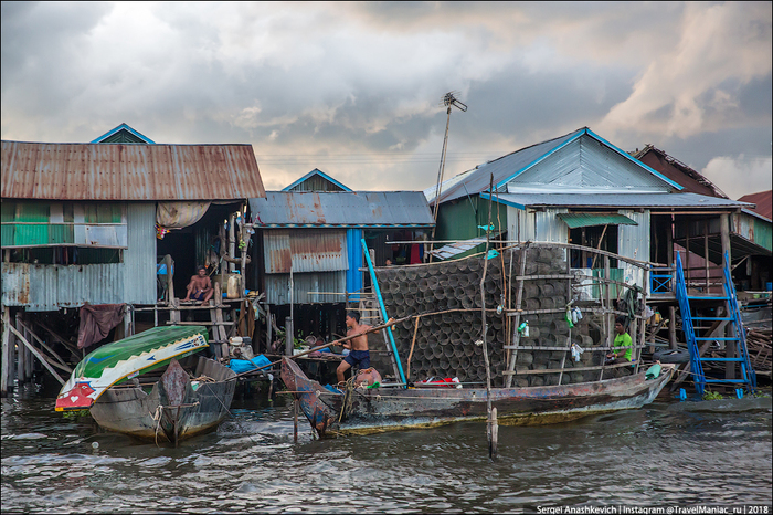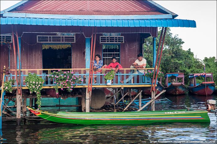 Это еще была дополпотовская Кабоджа, жизнь в стране была довольно благополучной, и иностранцам было запрещено в ней селиться. Но это касалось земли и власти не трогали тех, кто селится на воде. Беженцы быстро это осознали и стали массово обустраивать плавучие жилища и целые поселения на озере Тонлесап. В наше время крупнейшие плавучие деревни в Камбодже - это поселения вьетнамцев, несмотря на то, что после войны прошло уже очень много времени и сменилось несколько поколений.