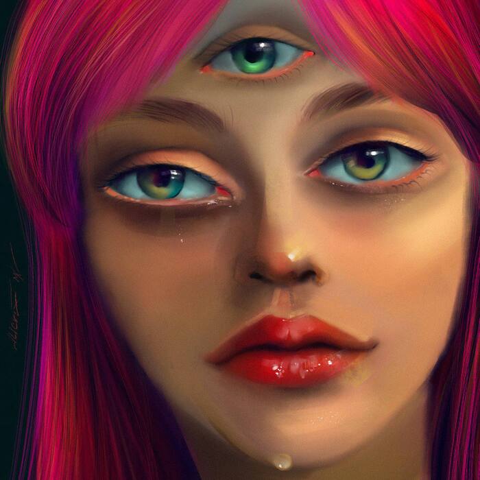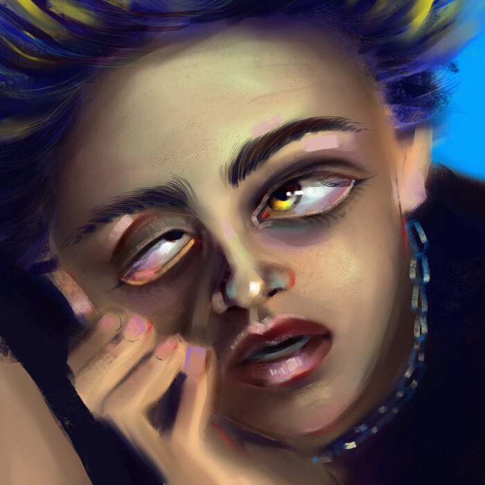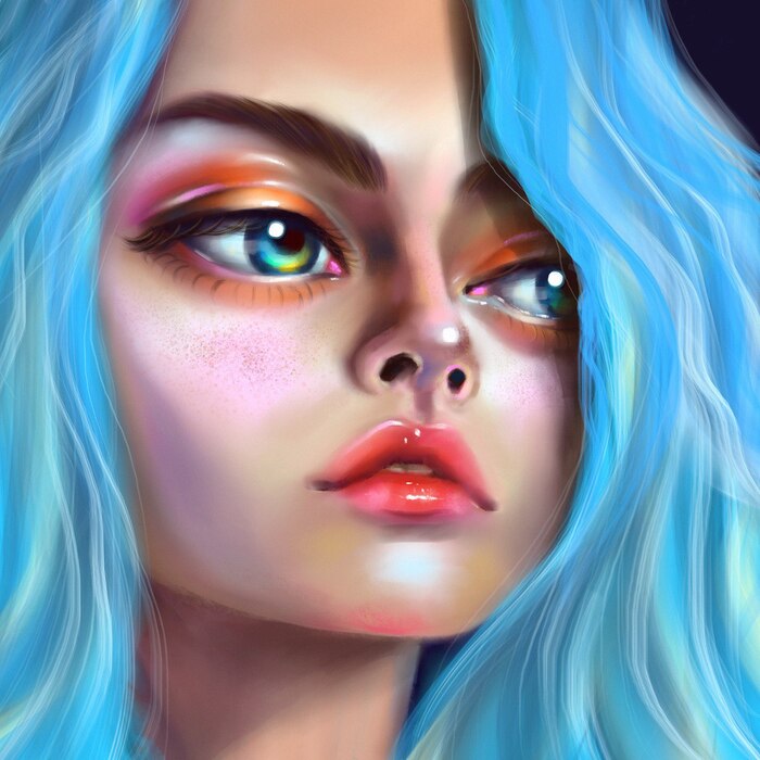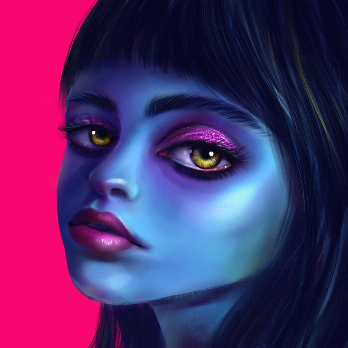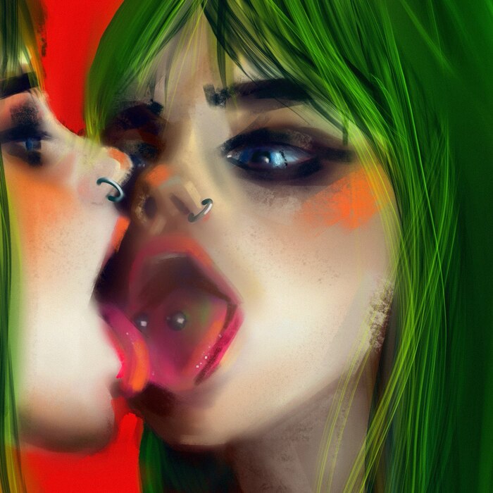 Контраст розового с зелёным усиливает ощущение живости и эмоциональной глубины. Идея была это передать. Синий цвет - метафора таинственности и загадочности парня, возможно, он не так наивен как может показаться, ведь сделал кастом своего мотоцикла довольным агрессивным 😎