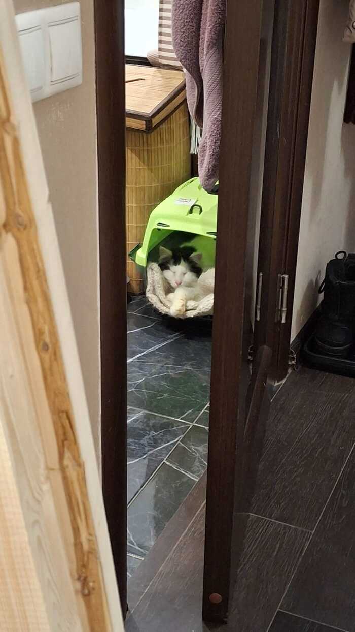 Кошка удивительная. Ласковая. Очень стойко переносила все что с ней делали)пытались найти ей дом,но пока безуспешно,забрали ее пока к себе. Лоток знает безупречно. По возрасту около двух лет. Глаза потеряла вероятней всего из-за инфекции.Домик у нее пока переноска в которой мы ее возили везде. Ей там нравится и безопасно чувствует видимо,чуть что ныряет туда,так что пока не трогаем. Единственное место где у нас можно заерыть дверь - санузел,там ее и оставили первое время,но она его покидает уде всечаще,но ей там нравится)