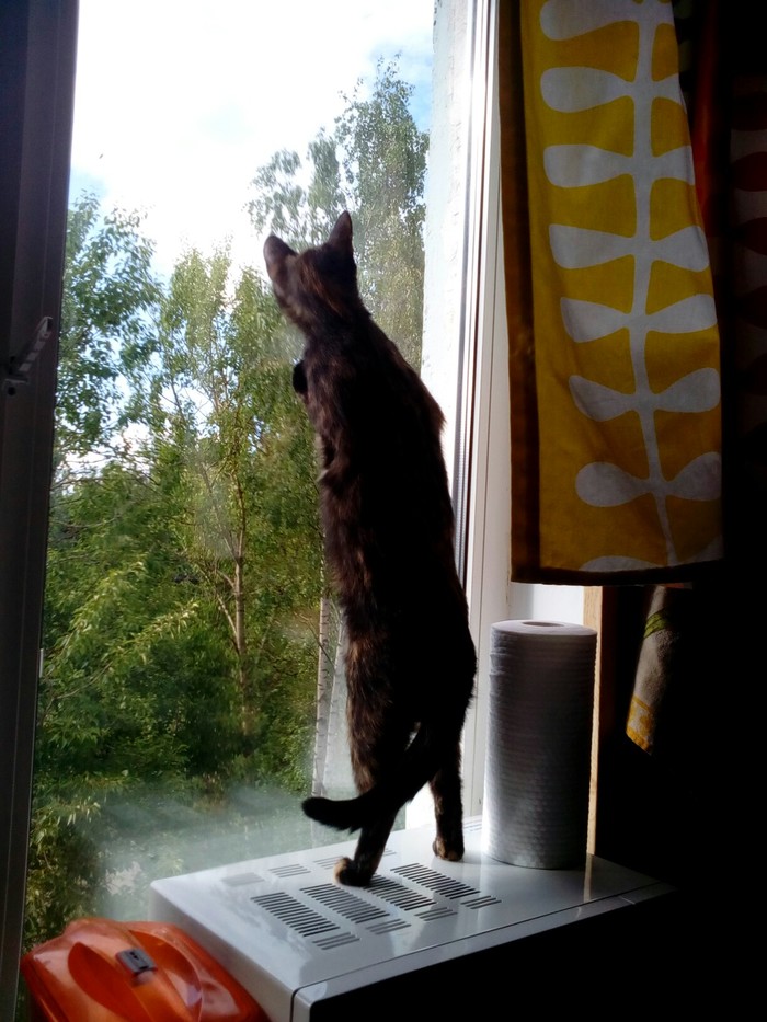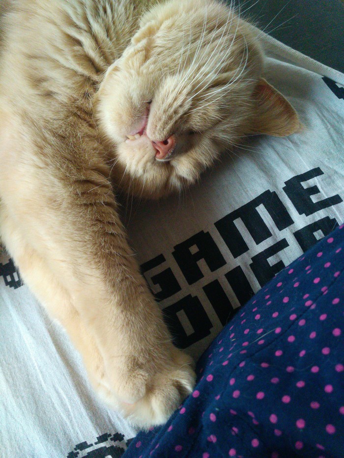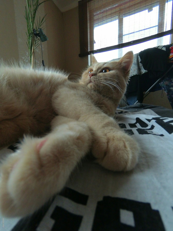 В общем, малой две недели ежедневно доставлялся в клинику на капельницы и уколы (ума не приложу, как его тщедушное тельце вмещало столько лекарств), дома ему промывались глаза и насильно вталкивались всякие лечебные корма. Огурец превращался в кота на глазах: уже через пару дней он начал хавать, как не в себя, кровь в пипи исчезла, глаза прояснились и, конечно же, проявились игрательные и мурлыкательные функции, без которых кот и не кот. Правда, однажды он за ночь обгадил всю квартиру, так как попа не держала его какашки. Думали, что вторая волна болячки пришла, но, как оказалось, стандартная реакция на антибиотики. Отпоили смектой, стул снова в порядке, сэр!