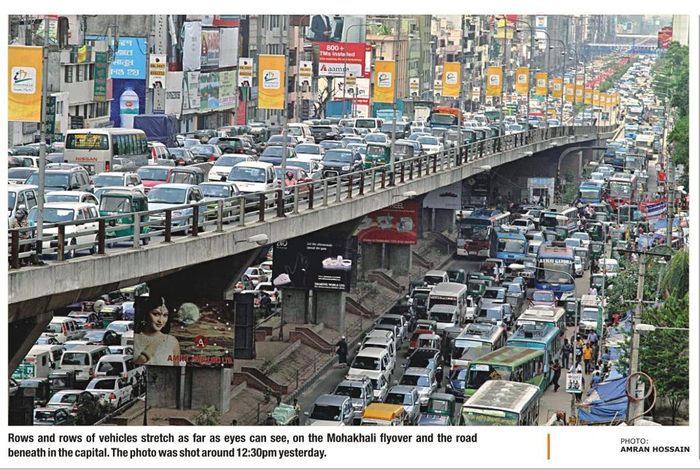 Вы считаете, что пробки в вашем городе настолько удручающие, что нет сил? Радуйтесь, в Дакке такие пробки, которые вам даже не снились. Затрудняюсь в подборе слов для описания бардака на дорогах, творящегося в этом городе. Пара фоток ниже мои, а пара из даккской газеты, у них ракурс лучше выбран -