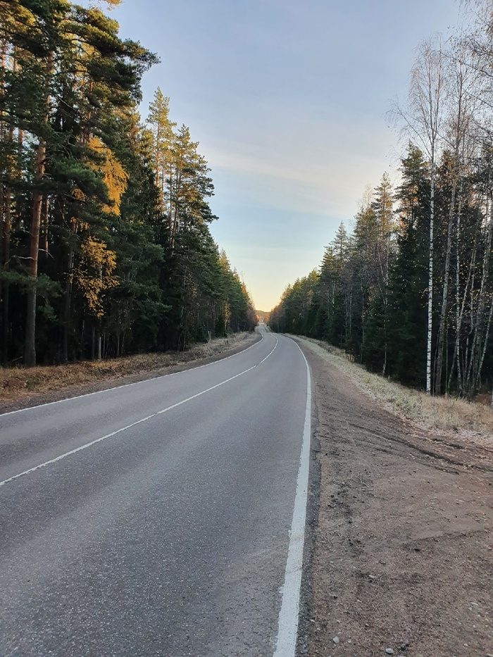 Дорога от станции довольно неплохая, сначала небольшой участок с ухабистой грунтовкой, но остальное время шоссе с хорошим покрытием и минимальным движением, ехать мин 50 неспешно.