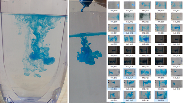 Поэтому я схватил кувшин из под фильтра, намешал в стаканчике гуаши с водой, набрал в шприц, расчехлил свой старенький 600d и начал фотосессию. Спустя некоторое время на моей флэшке лежало больше сорока фоток тонущей краски в разных ракурсах, стадиях и с разным освещением.