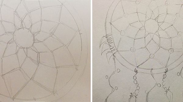 После долгого гугла я определился с наиболее понятным и распространенным плетением ловца и принялся набрасывать его карандашиком. Ну и следом довёл весь набросок ловца до конца.