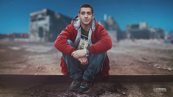 Итак краска была отснята, ловец был нарисован, а парни к этому времени уже сделали фотки. Условия, которые я расписывал им, естественно были соблюдены максимум наполовину, но я был готов к этому, на деле ничего никогда не выходит так, как задумывается в голове. Тем не менее годных фото было достаточно, я взял подходящие для обложки, отретушировал , а также отобрал наиболее аккуратные пятна краски и принялся непосредственно за оставшийся фотомонтаж.