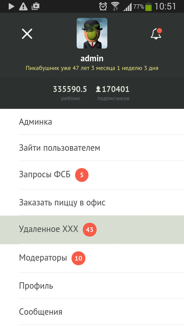 maxim270 Баяны Решил зайти на пикабу... смотрю вверх.думаю,новую картинку на аву не ставил.перехожу и ничего не понял.Что это за баг? 8 лет назад Показать полностью 1 [моё] Админ Баг