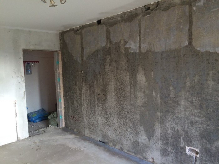Особенная мякотка была в спальне, где одна стена была обделана (не уверен, что подберу более лучший синоним) ЦПСкой от "застройщика". Реально толстый кривой слой сыпучей пакости, впитавший в себя запахи и злой фен-шуй прошлых владельцев. Ох, соседи и послушали долбежку (особенно если на работу не ходили), пока я это отскребал топором, отверткой, циклей, перфиком, ногтями, такой-то матерью...